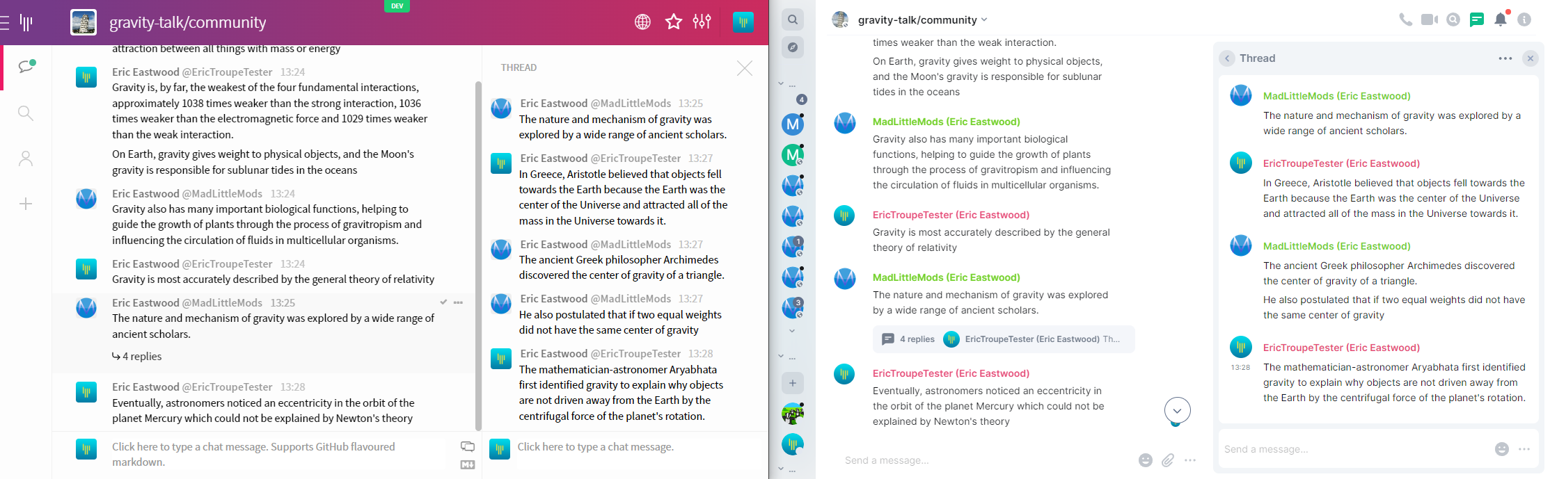 Of course, since it's Matrix, you can use whatever client you want to access your public, private and one to one (now DM) conversations!